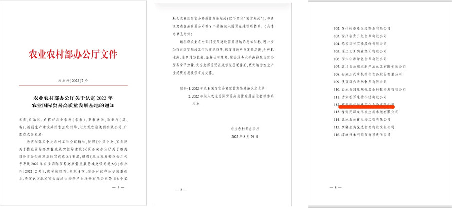 酒泉敦煌種業百佳食品有限公司被農業農村部認定為2022年農業國際貿易高質量發展基地