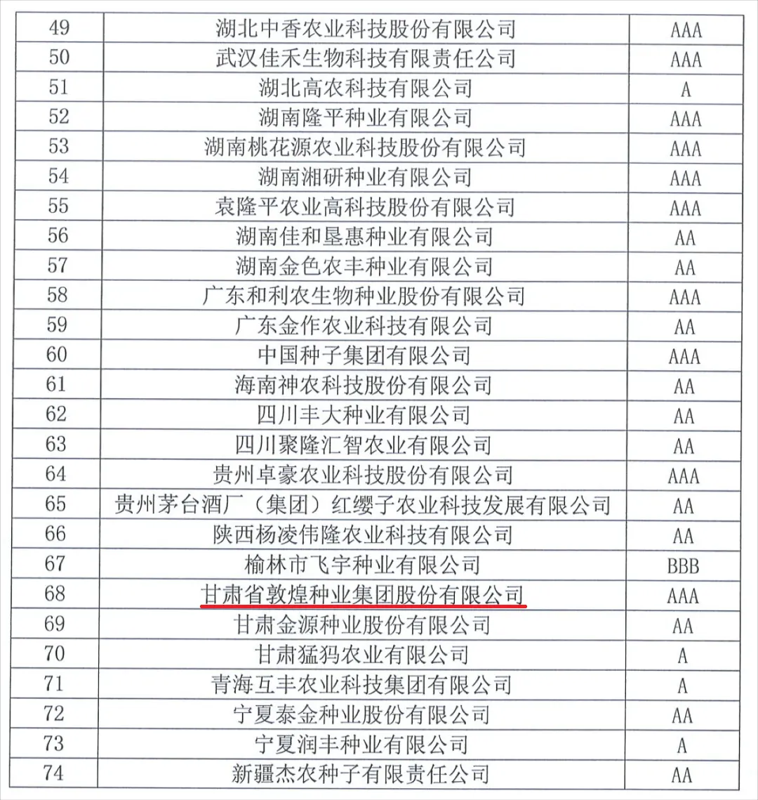 中國種子協會2023年種子行業信用評價結果公示根據《中國種子協會行業信用評價管理辦法》規定,現對2023年種子行業信用評價評審結果予以公示..[2023-12-14]